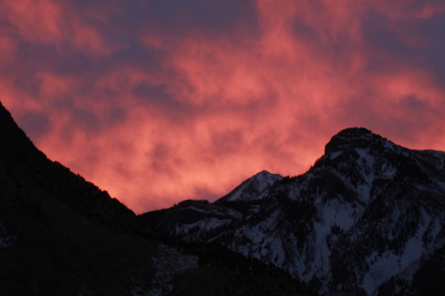 I’m sharing just a photo today. It’s a photo of the sunrise above the mountain just east of my home that I took last Wednesday, February 1. When my girls woke to see the amazing red, pink, and purple sky…