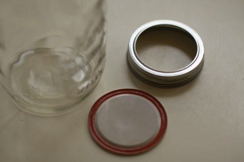 Then I place the lid on upside down and twist on the ring.