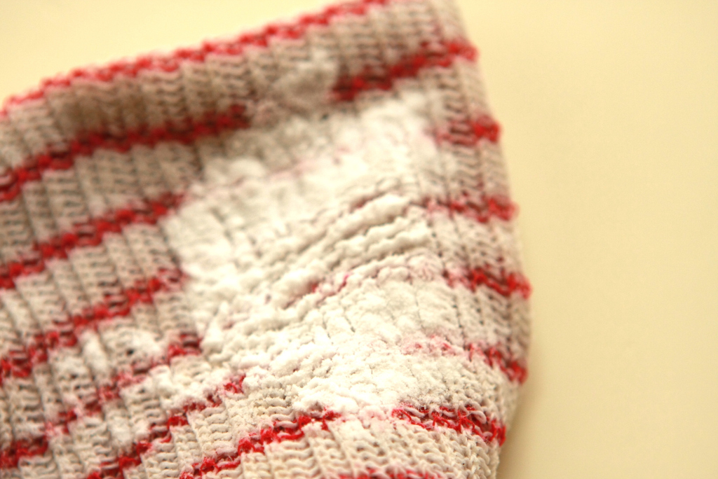 2. Then dip into or sprinkle a little baking powder onto the cloth.