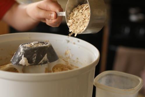 Add 1 teaspoon of vanilla. One way I know Ben will be a good cook is he is already willing to experiment a bit. He said as he was baking that he wanted to see what happened if he added a bit more vanilla, since he loves the flavor. Ben’s cookies had 1 -1/2 teaspoons of vanilla. Yum. Mix it well.