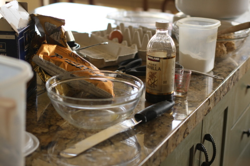 Here’s what happens when Ben makes cookies. Wow. He pulled out about half the dough for his chocolate chip and the rest he added butterscotch chips. And yes he did clean it all up in the end.