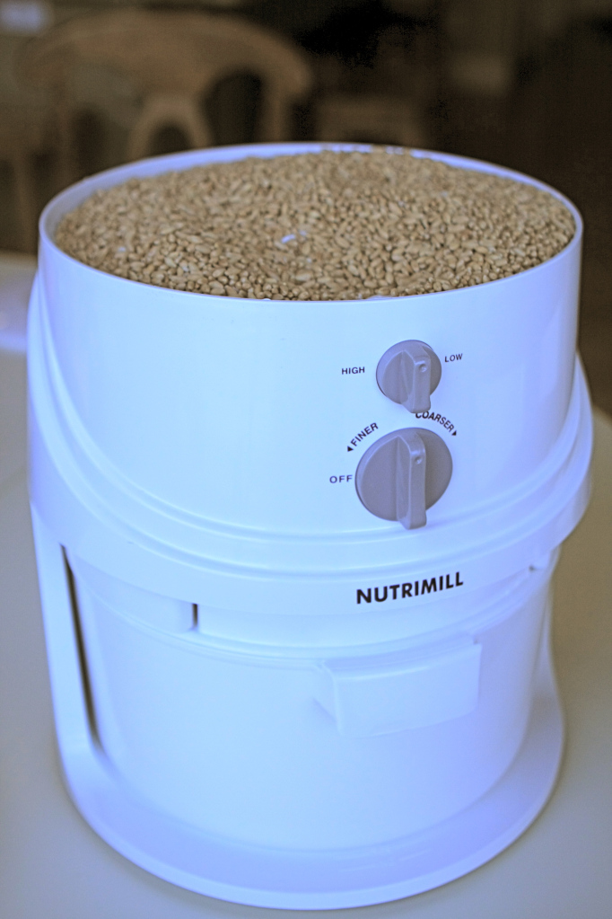 After some research on which brand to buy, my husband purchased this Bosch Nutrimill Grain Mill for my birthday several years ago.  This brand does have a few drawbacks of being loud and occasionally sends out flour if everything isn’t seated correctly, but otherwise it does a wonderful job.