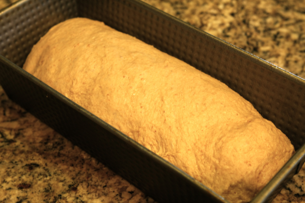 10.  Divide your dough into 4 equal pieces and form into a loaf.  Place into a greased bread pan.  I love my Norpro Bread Pans which are 4.5 x 10 inches.  It makes a really nice loaf for slicing.