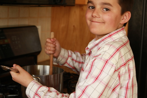 I said on Monday that I am really trying to focus on the little things.  One of the things I know I will remember in years to come is teaching my kids to sew, garden and cook, of course.  While I haven’t had much luck getting my son interested in sewing- yes, I’ve tried.  Cooking is another story.  Boys CAN cook.