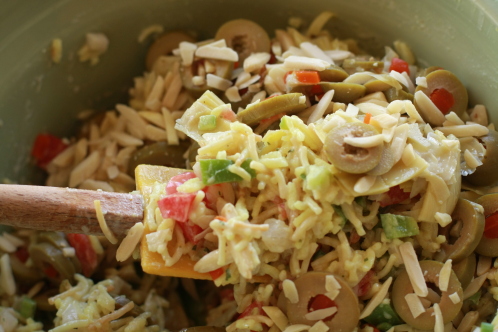 Years ago my sister-in-law (who is also one of my favorite people in the whole world) brought this amazing Chilled Rice and Artichoke Salad to our family picnic.