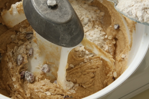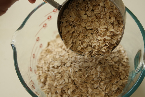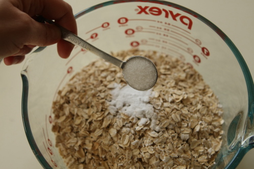 Here’s a great tip:  In a separate bowl, add the flour and oats…salt and baking soda…