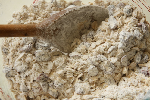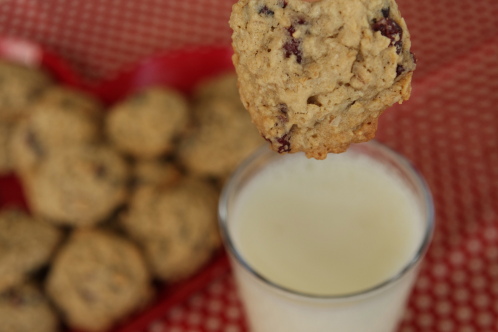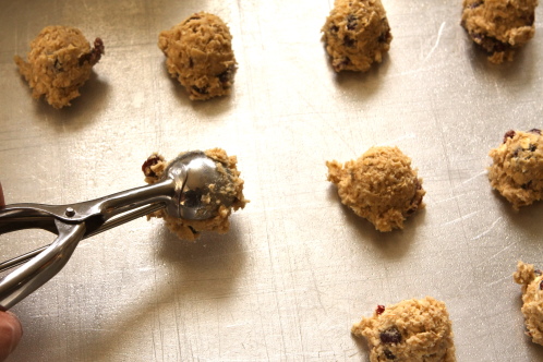 Then add the dry ingredients to the sugar mixture in batches so that it incorporates before adding more.  That way you don’t end up over mixing the flour and the Craisins are nicely distributed through the cookies.