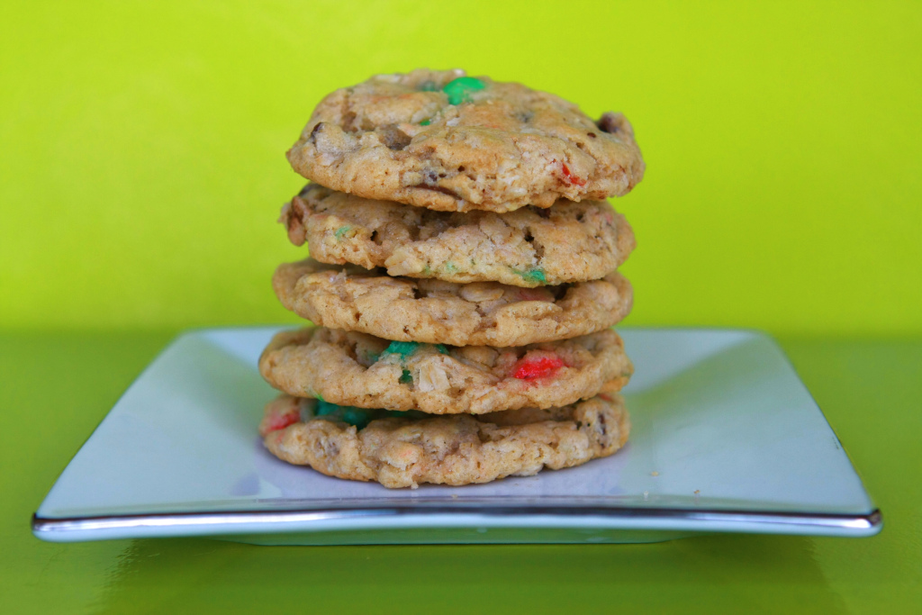 And here’s a few additional tips: I found it best to make the cookie mix in a Wide Mouth Quart jar. I didn’t buy the special craft jars that Bakerella used, because they are more expensive and I don’t mind the embossing. I used my wide mouth canning funnel to pour the ingredients in the jar, which really reduced the mess. One batch made about 2 1/2 dozen cookies. I used regular Christmas M & M’s, but I was tempted to try the Mint Christmas M & M’s, I think that would be really yummy.