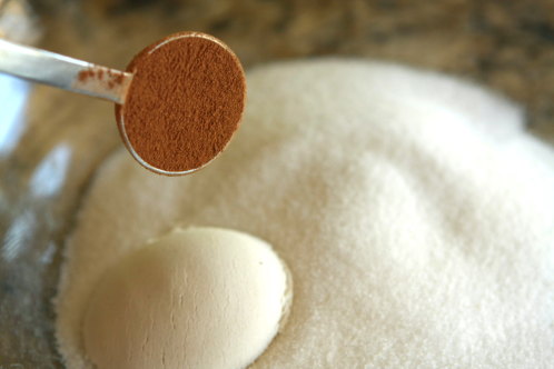 In a mixing bowl, mix together 1/2 cup of sugar, 1 tablespoon of flour, and 1 teaspoon of cinnamon.
