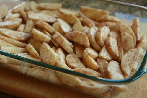 Spread the apple mixture out evenly into a 9 x 13 baking dish.
