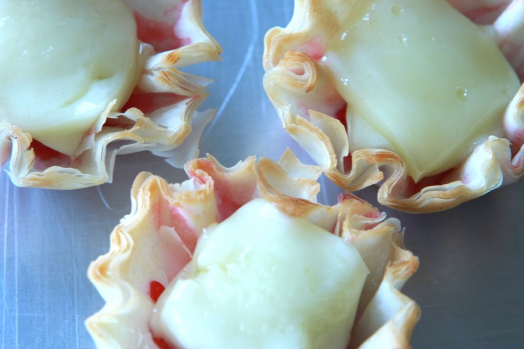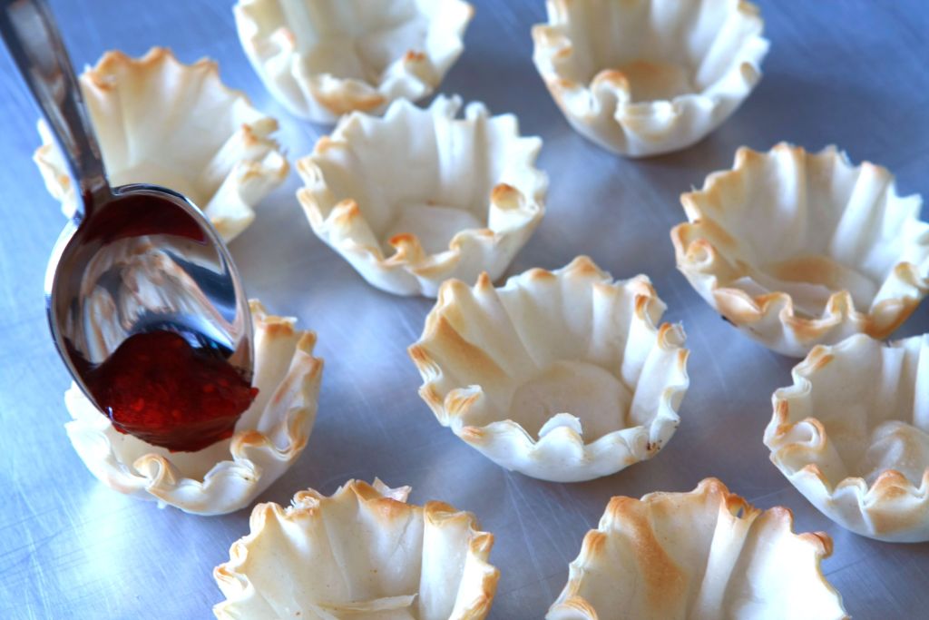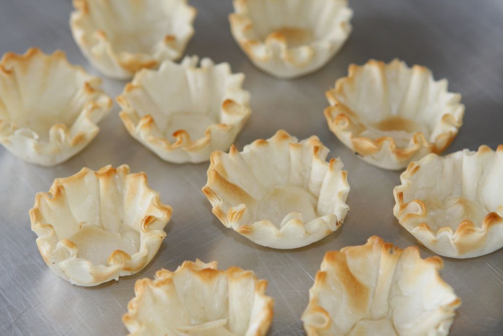 The first is made from Fillo (Phyllo) Cups. You can buy them just as you see them, pre-formed and pre-baked.