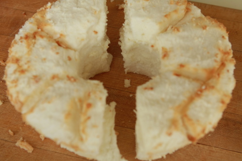 This time we used a store bought sponge cake. We usually make a sponge cake from a mix, but the boxed cake mix was $2.99 and one in the bakery was $3.99. So, I saved myself some time.