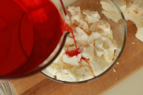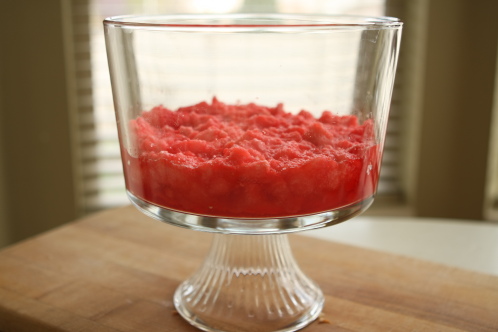 Once the custard is well on it’s way to cooling in the refrigerator, make a large box of Jello. Drew used Strawberry Jello. DO NOT REFRIGERATE THE JELLO. You want it to remain liquid for as long as possible. Don’t make the speed method either.