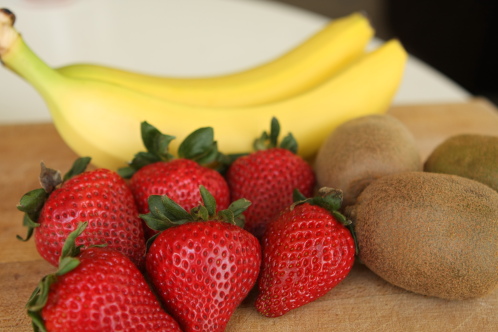 - Fruit of choice- today it’s strawberries, bananas and kiwi. We try to pick something that is in season and then match the flavors.