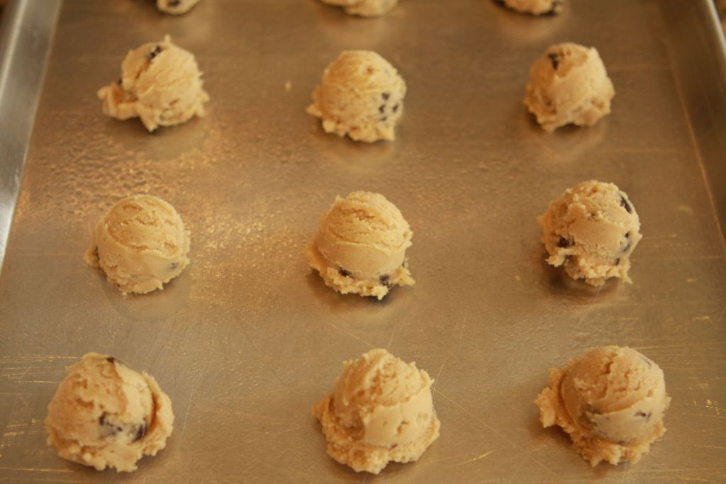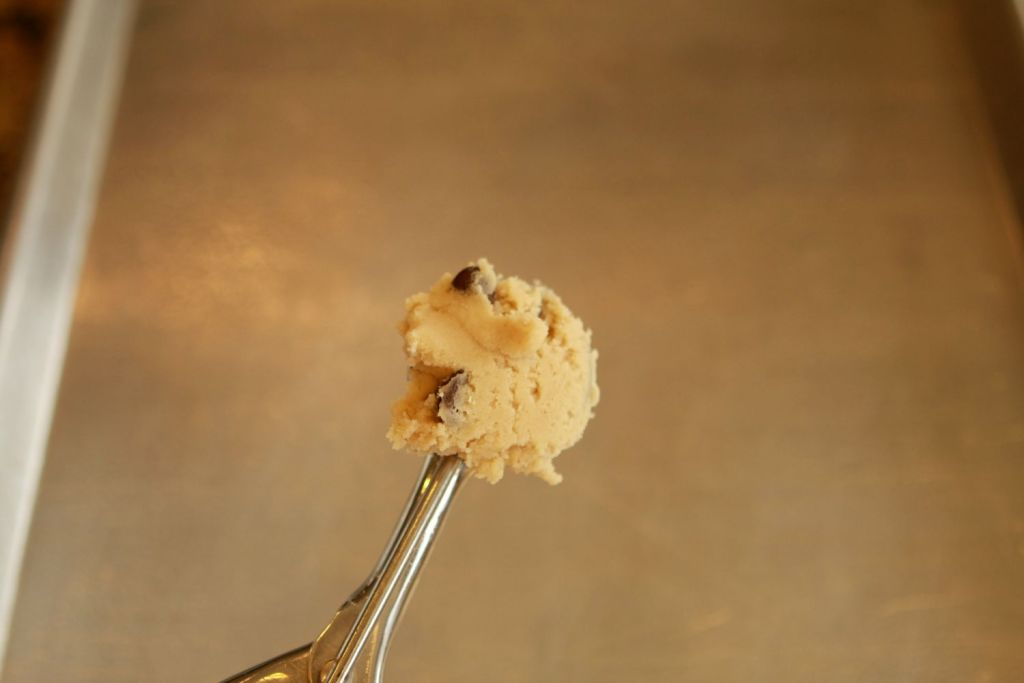 4. Grease your cookie sheet. I spray it with a little cooking spray. I love using a small ice cream scoop. It’s fast and the cookies are more even.