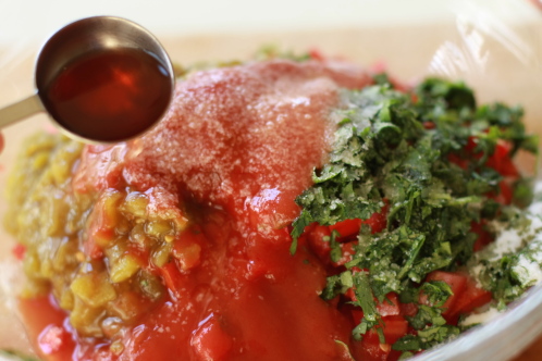 At least I can grow oregano. This herb is from my garden. Oregano is such a surprise for a salsa. But I love it in there.