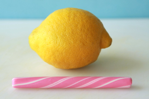 All you need is a fresh lemon and a 5 inch candy stick. We like a pink lemonade or a raspberry flavored stick best.