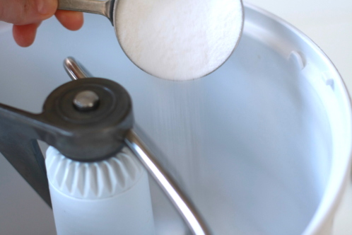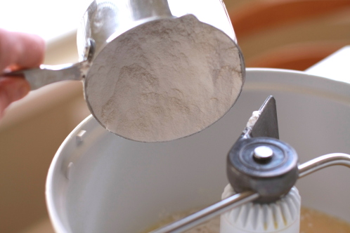 The day before serving, combine warm water and milk with the dry active yeast- think baby bottle warm. Just a word about yeast, after trying different brands, I’ve settled on SAF- Instant brand as my favorite yeast. It’s an almost fool proof yeast.