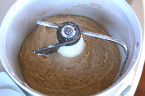 In a stand mixer, fitted with a bread hook, add melted (but cooled) butter (too hot butter can kill your yeast, scramble your eggs, and ruin your day), yeast mixture, sugar, salt….