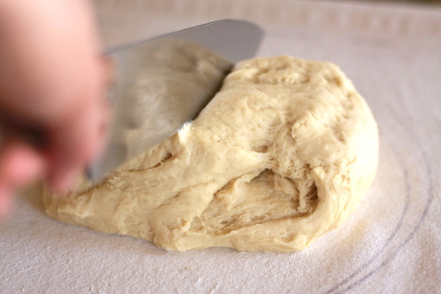 If you don’t have a pastry frame, I prefer rolling out my rolls on a greased counter or cutting board with shortening or butter, rather than using flour. That way your rolls stay light. You would also want to grease your rolling pin.