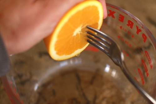 While your rolls are in the oven, make the glaze. Juice a whole orange.