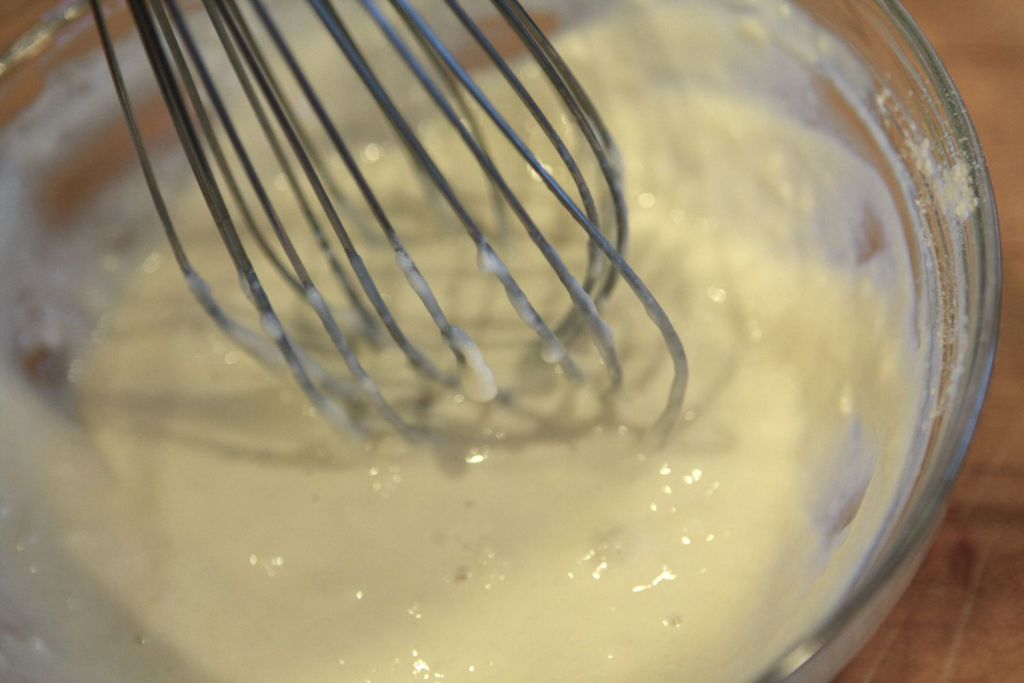Whisk together 1/2 cup of milk with 1/2 cup of flour until smooth.