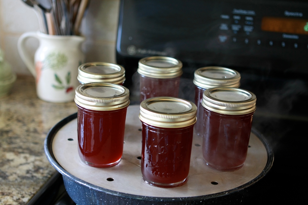 When the steam is done, remove the jars carefully to a clean towel and let them stand for 12 hours before washing them off and putting them in the pantry. One of my favorite parts is hearing all the lids popping after they are done. That means they are sealing. If you don’t get a seal, you can always reprocess syrups, or stick it in the refrigerator and use it up.