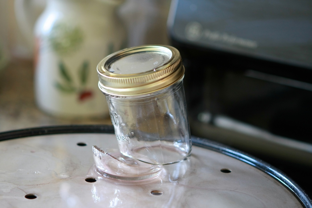 One of my jars broke while processing. I hate when that happens! Not only is it a bit of a mess, I hate loosing my precious hard work. I knew immediately what happened when I heard the pop from the canner… but there was nothing I could do about it, so I just let it keep processing. I have a can break every few years, and I always try to second guess what happened, were my jars not hot enough going into the canner? Was the bottle weak? Maybe someone wiser than me knows…