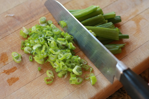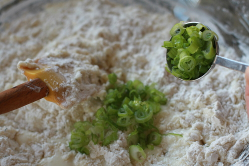 Next prep the green onions. I’m using the just the tops for this recipe, since I like the color in the muffin. You’ll need 2 tablespoons. Set them aside for now.