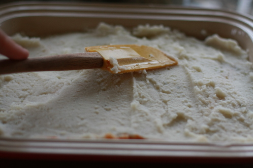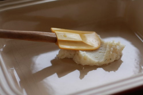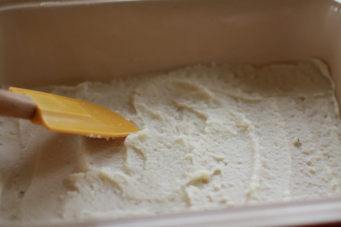 Then spread the potatoes out evenly… just like frosting a cake.