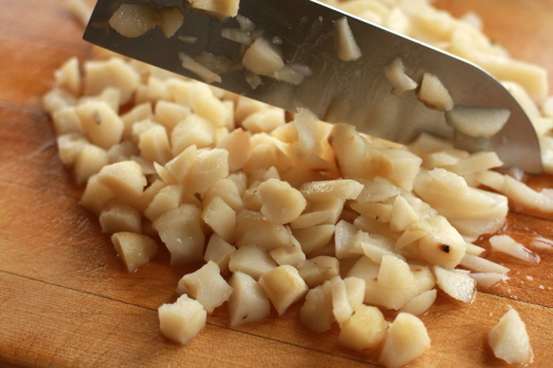 Chop one small can of water chestnuts into small pieces. The recipe says the water chestnuts and green onions are optional, I say they are a must! They give the dip the perfect crunch and flavor.