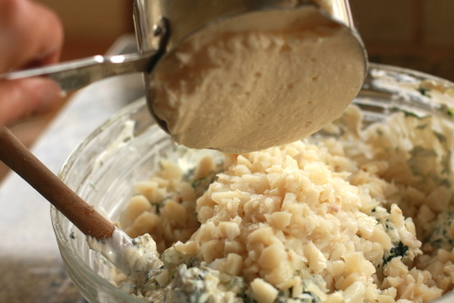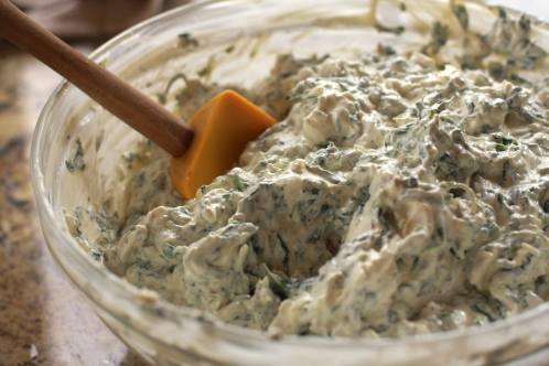 Which is perfect for squeezing out the 50 million gallons of water from the thawed spinach. Holy cow! Where does all that water come from? Make sure you don’t skip this step unless you want runny dip.
