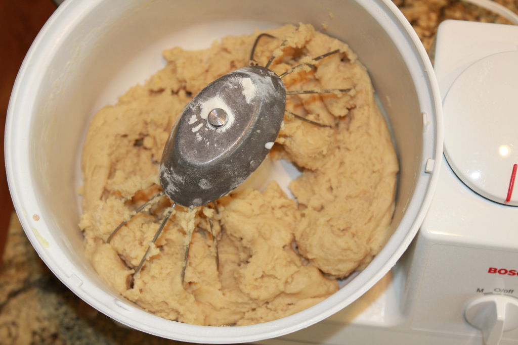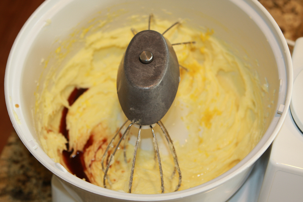 4. Add eggs, vanilla, lemon extract and lemon peel and mix well.