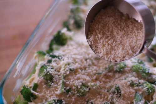Top it all off with 1/2 cup of breadcrumbs and bake in the oven for 30 minutes at 350 degrees.