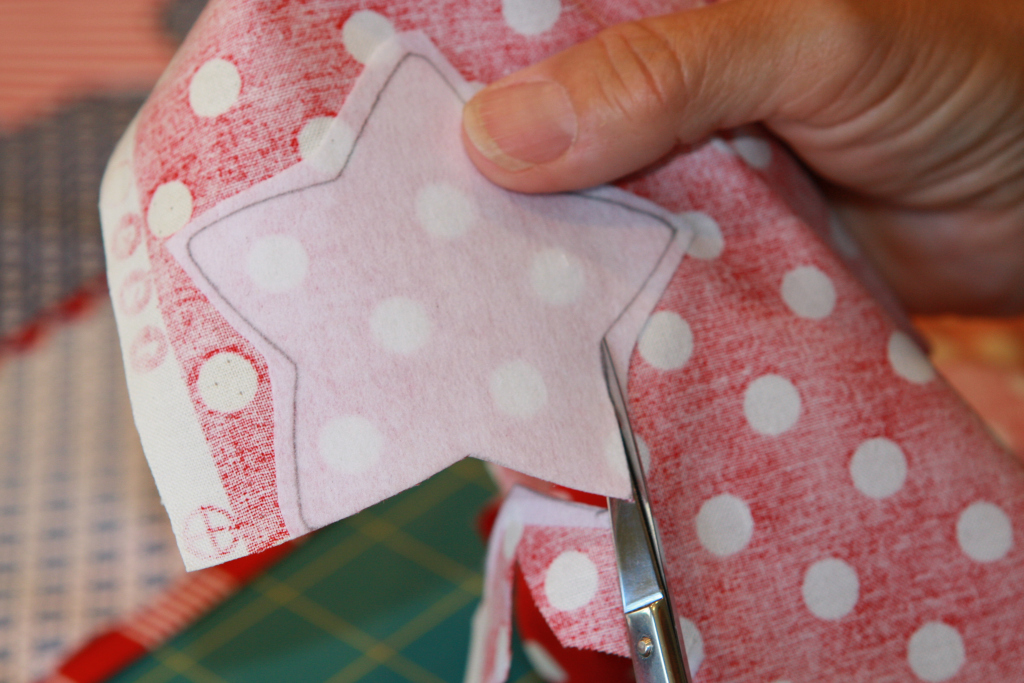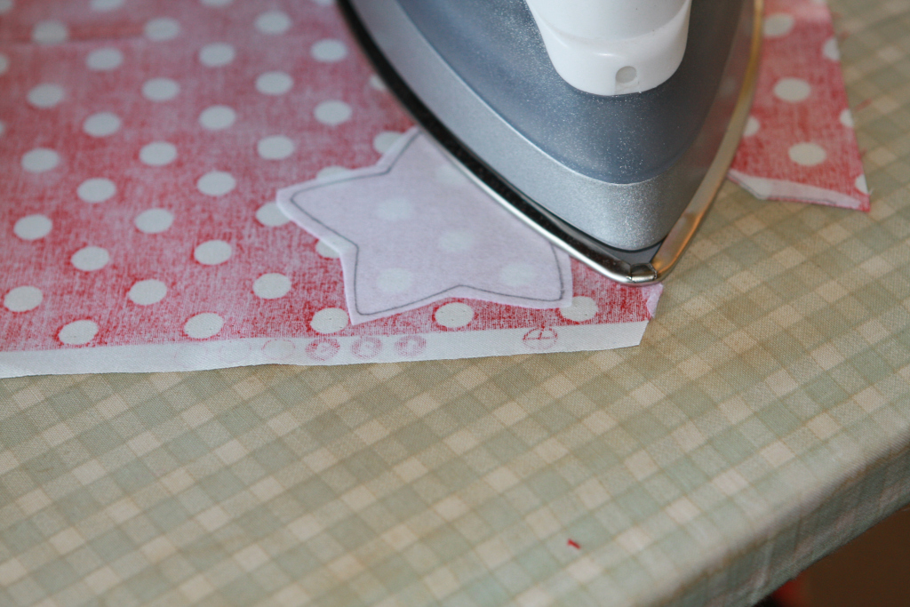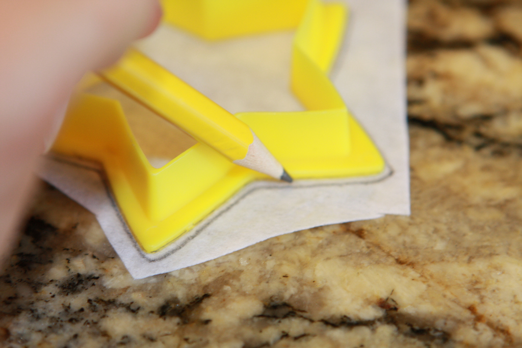 5. Make the stars and circle by tracing pattern to the smooth side of wonder under. I used cookie cutters and a cup… but I made a printable template for you.