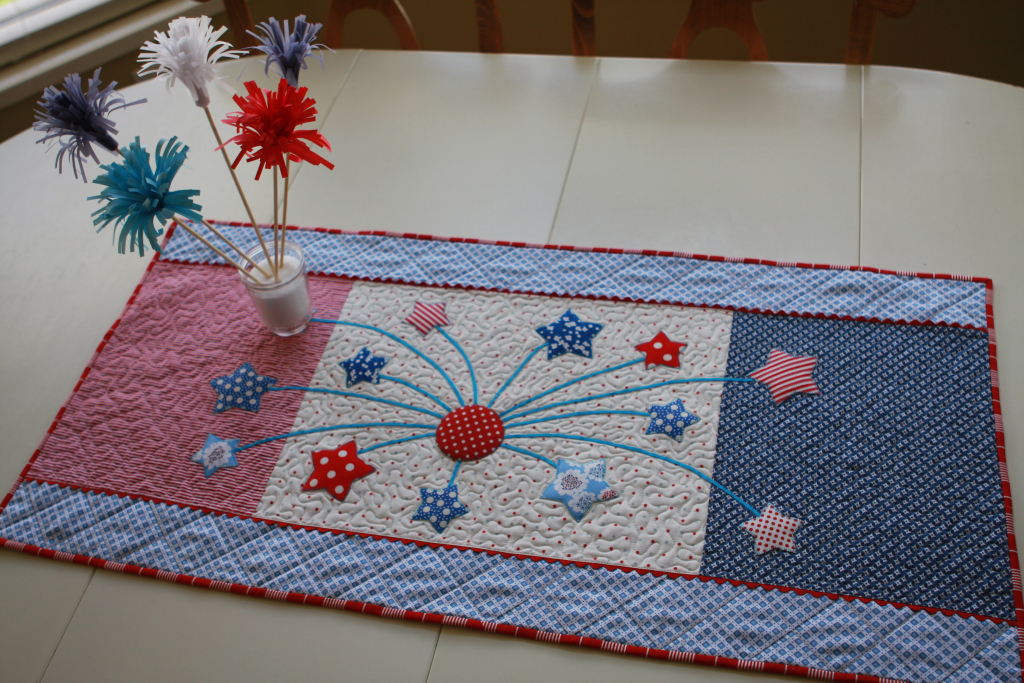 Here’s a tutorial on how to make this fun Quilted Firework Table Runner: Here is a printable PDF of the instructions: You will need: