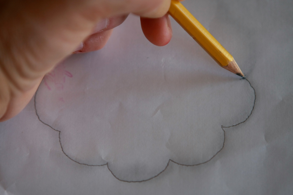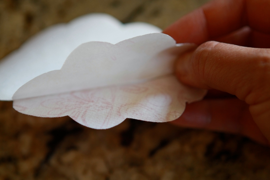 1.  Place the template under your iron-on adhesive and trace all three flowers.  Roughly cut out around the flowers, leaving a little edge.