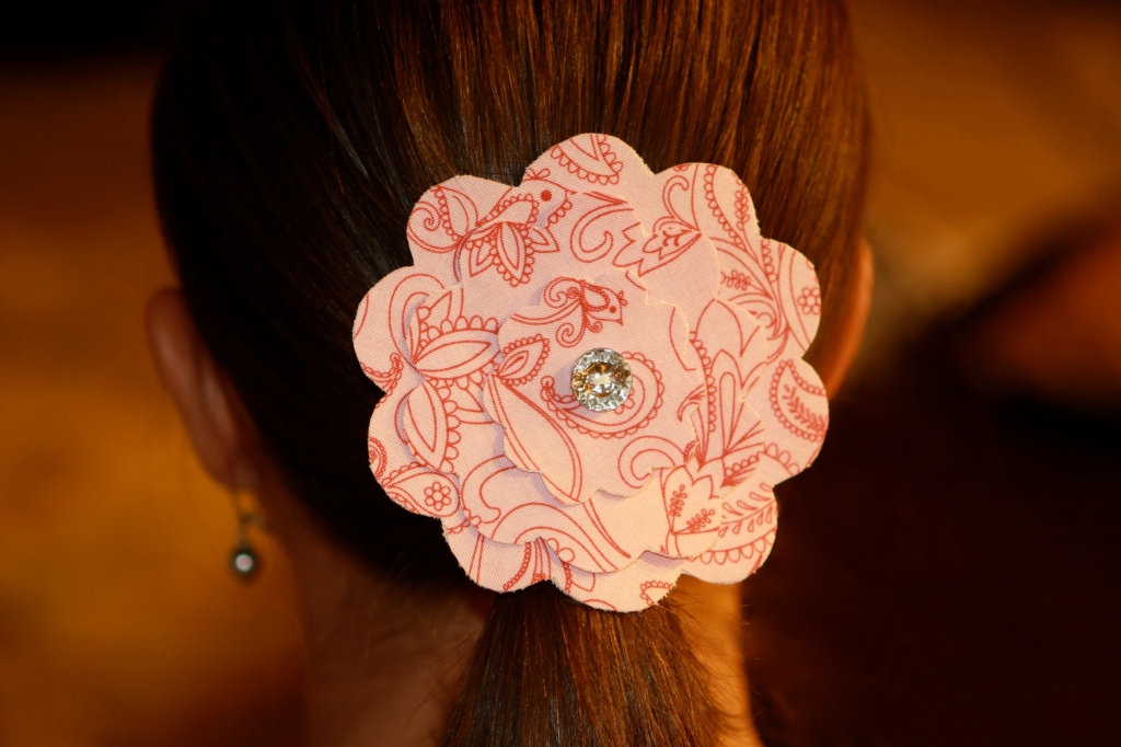 8.  In the largest circle, cut two small slits, across from each other.  This will be to slip a hairclip or pin into, as you can see below.