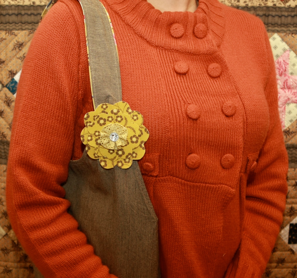 These flower pins make a fun, easy and thoughtful handmade gift.  If you prefer one out of ribbon, don’t forget the tutorial for ribbon flower pins I made in the Spring… they would be wonderful in reds, greens, silver or golds for the Holidays.