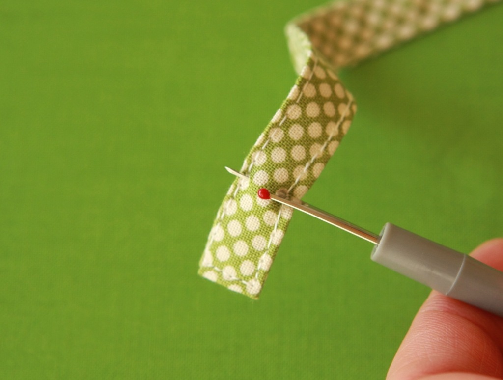 Press a fold in on each end. I like to press the edges in at a slight angle so they don’t stick out once it’s stitched.
