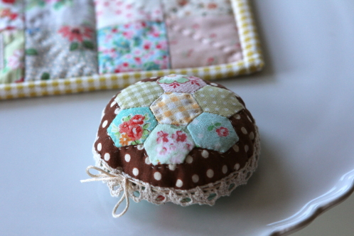 I’ve had quite a nanaCompany week, since I made a copy of her little hexie pincushion.