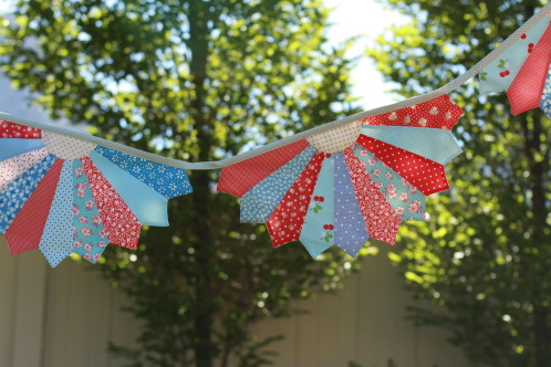 Last week I was looking at the cheerful bunting I have hanging in my kitchen nook. It is spring toned 1930’s fabrics and realized I need something new and fun for summer. What I really wanted was something that echoed…