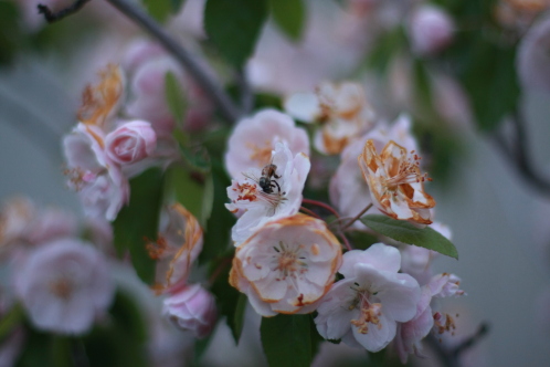 I realized that I just can’t properly enjoy the beauty of all the little things in my garden- the buzzing bees, the small blooming things, new little plants coming out of the earth, the smells of lilac, bridal wreath, and Spring Snow crabapples in bloom…
