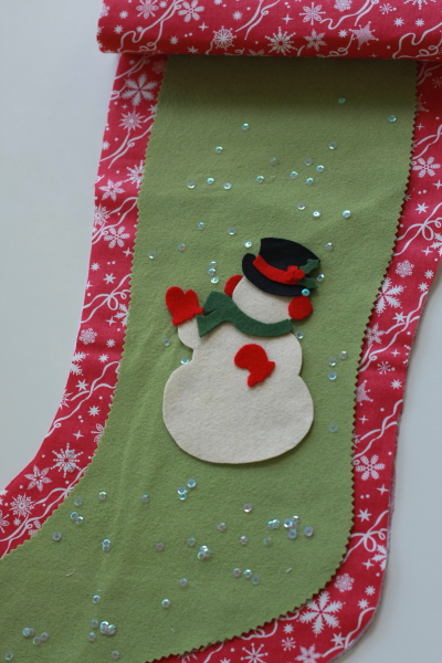 I love all the scope for the imagination with a project like this. I have felt snowflakes still to cut out and I love the addition of sequins. I’m still not sure about the pompoms… I also know this project won’t be complete without some embroidery to make the face and buttons and even some additional snowflakes.
