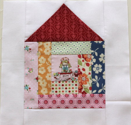 And a sweet little house block. I loved fussy cutting the Simple Life fabric by Tasha Noel from Riley Blake in the center.