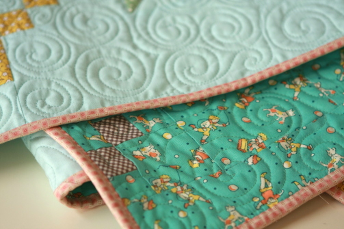 I love the cheerful 30’s fabric for the backing which even has a little kite flying boy.