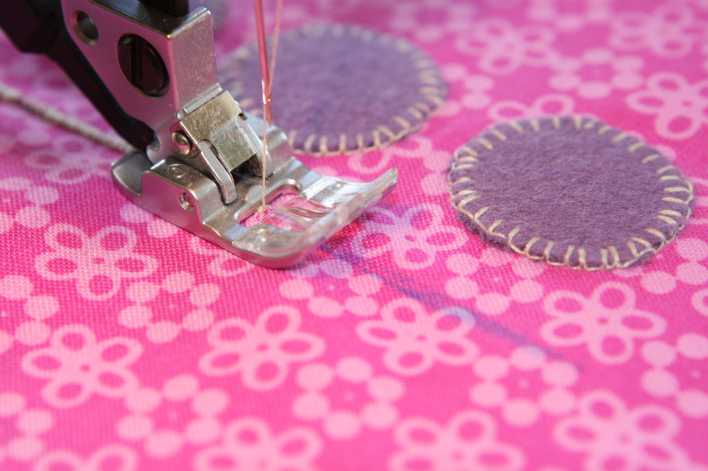 4. Using a blanket stitch, stitch around the eyes. My sewing machine does a blanket stitch which I used. But if yours doesn’t, it is very simple to do it by hand.