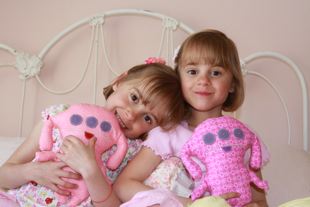 Lily and Emma are so in love with their new ugly dolls that they have slept with them the last two nights. Their dolls have gone with them everywhere, including school, safely tucked in their backpacks, of course. The whole project took about 3 hours to make two dolls and the cost was a few dollars in material. But the end result is so much better than if I gone out and spent $40 on store bought toys. I love companies like Ugly Doll who are creative and have heart. And I would love to support them… but sometimes there is nothing better than “Making it Do.” You see, on Saturday I was able to spend time making memories with my girls. We used our imaginations (I got to meet Mrss. Bananana and Mrss. Jhooee!) And the girls love their dolls all the more because they designed them, chose the fabrics and worked hard to create them. Wait, did I just say work? We thought we were just having fun.