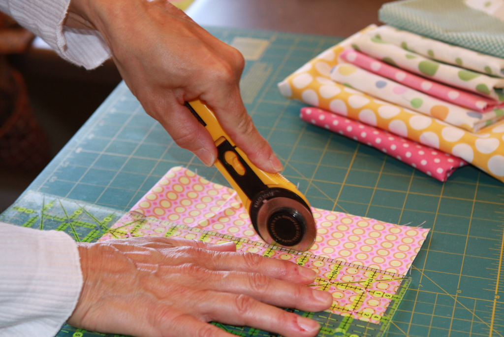 • Strips of fabric 1 1/2 inches to 3 1/2 inches wide and 18 inches wide.  We used 18 strips but you can customize to the size of your table. (Don’t worry if you need to piece some of the strips, we did on this project)