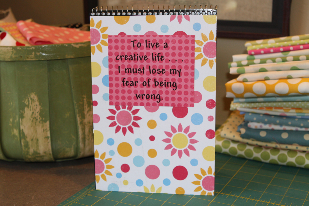 I am so happy with our finished project, and it looks really great on my table.  But, if you are feeling even more creative you could iron-on a bunny or flowers and finish with a blanket stitch.  What about adding buttons or trims?  Use your imagination.  Don’t be afraid, perfection is over-rated anyway.  I saw this quote on a notebook in my Mom’s sewing room and wanted to pass it along.